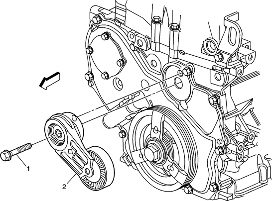 After removing the tensioner, inspect it thoroughly for any signs of wear, damage, or malfunction. If necessary, replace the tensioner with a new one or service it as needed. When installing the new tensioner or reattaching the serviced one, ensure it is correctly aligned and tightened according to the manufacturer's specifications.